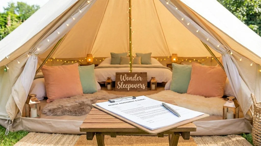 Assumption of Risk: The Client acknowledges that the use of camping equipment, tents, and lighting involves inherent risks. Wonder Sleepovers assumes no liability for injuries, accidents, or allergic reactions that occur during the rental period.